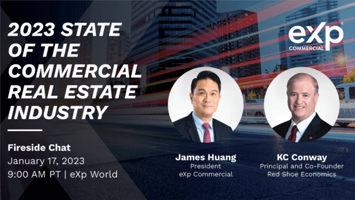 Join eXp Commercial President James Huang and Economist KC Conway on January 17 for a fireside chat as they discuss the state of the 2023 economy and how you can prepare your business for success in the changing market.