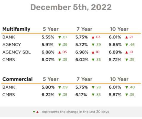 These are the average available rates from eXp Commercial’s Capital Partner CommLoan database of 700+ commercial lenders as of 12/05/22 and are provided for comparison purposes only. Actual rates are dependent on property and sponsor.