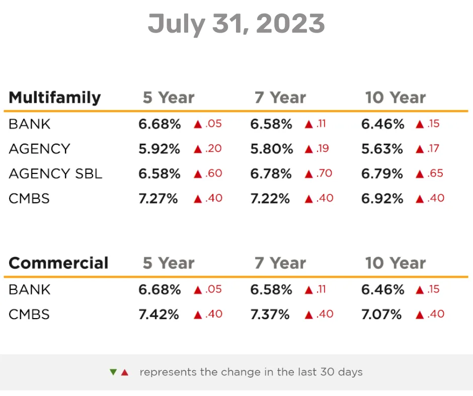 Average of the top competitive rates from eXp Commercial’s National Capital Markets Partner CommLoan from a database of 700+ commercial lenders as of 731/23