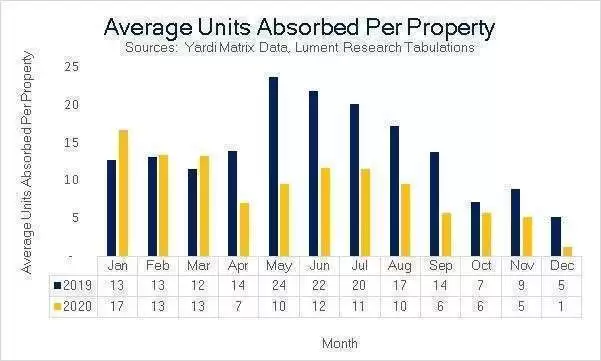 As in many things, however, appearances can be deceiving. To assess the situation, Lument Research spent a few days piecing together lease-up trajectories for new properties that came to market in 2019 and 2020 to identify any pattern changes that took place.