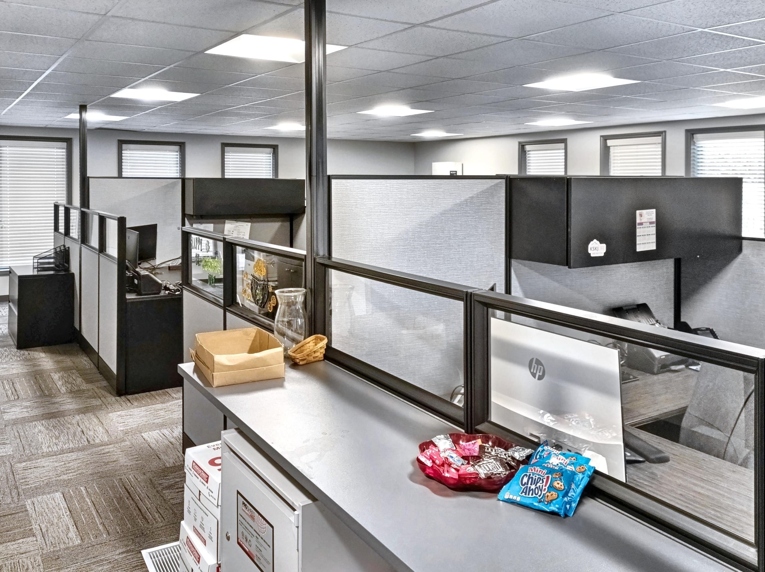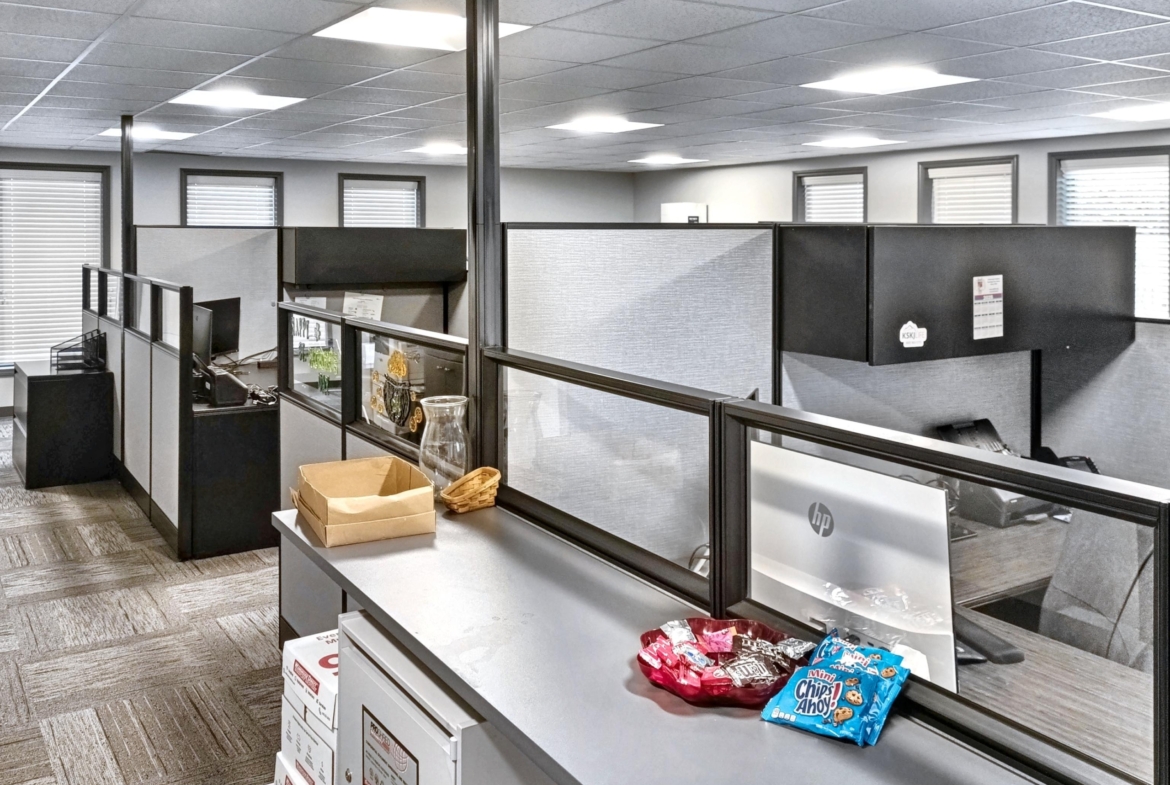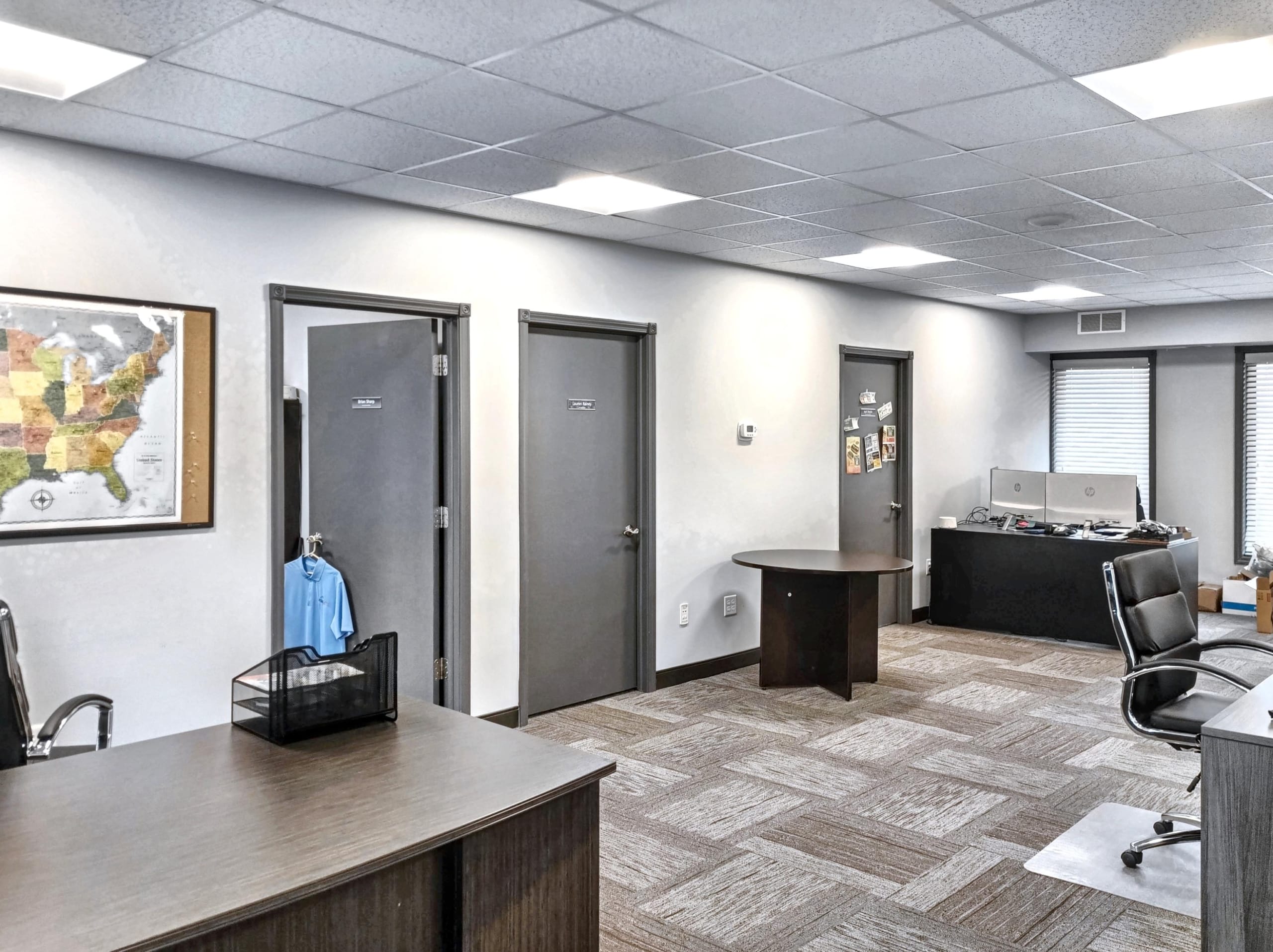 The building features a functional and efficient layout across two floors, connected via elevator. The upper level includes a welcoming reception area, private offices, conference and meeting rooms, open workstations, and a stylish breakroom/kitchenette—all recently renovated with updated lighting, flooring, and commercial finishes. The finished lower level adds versatility with additional office space, restrooms, a large training or flex-use area, and storage options. The entire space is delivered vacant, in very good condition, and includes optional commercial-grade office furniture for immediate use.
